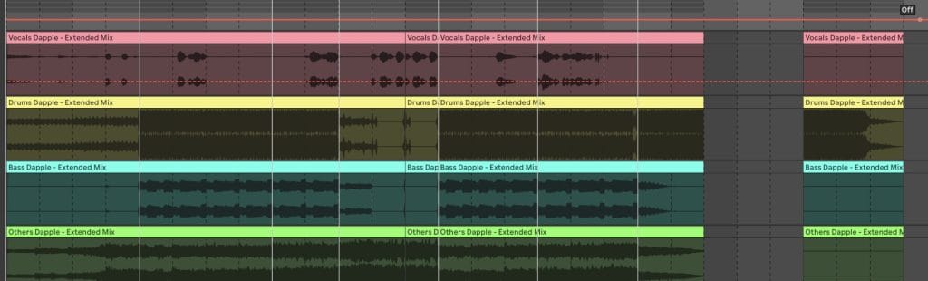 The track’s stems, once seperataed, helps visually map out where everything is happening.