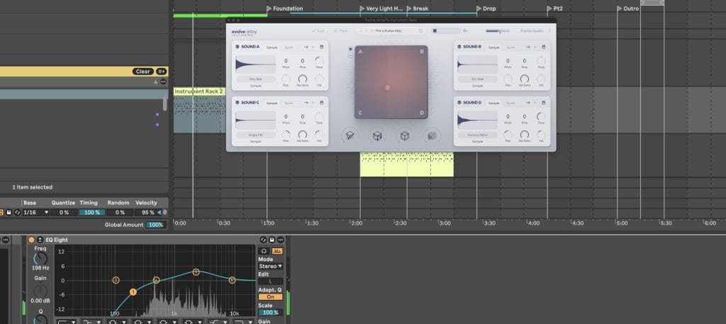 When referencing the track we’re using, I noticed that while many of the lead synth sounds are very synthetic, as if they’re from something like Diva or Spire, much of the percussive and transient-heavy melodic ear candies come from more acoustic or foley-based meldoic sources, which instantly makes me want to grab Evolve Alloy by Excite Audio as it makes replicating and synthesizing these excact types of sounds easier than ever and it’s one of my favorite tools for exactly this type of thing.