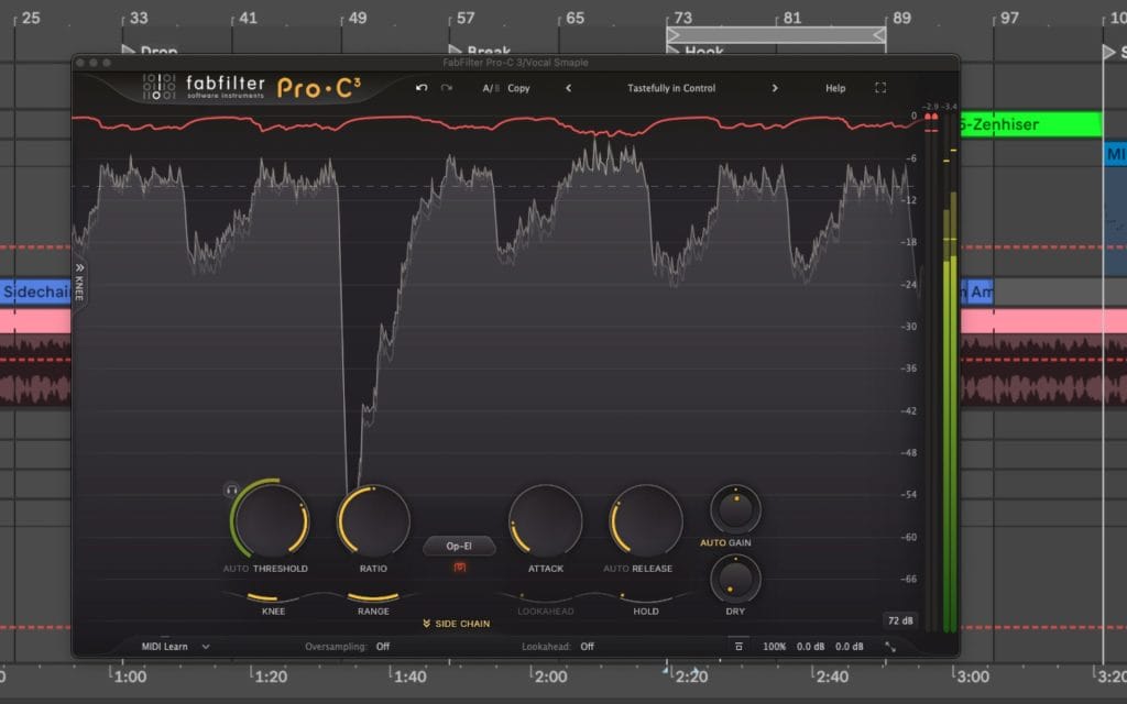 I wanted to have this article stay practical but I’ll admit it gets a bit into the weeds. I start with the math that people quote, then I connect that math to the way compressors actually behave once time and detection get involved. Luckily, Fab Filter’s Pro-C 3 just dropped so let’s use its beatuful UI as the backdrop for all the examples we’re about ot show.