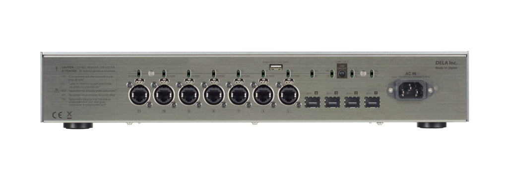 The S5 was developed to eliminate noise and interference introduced by conventional IT hardware. DELA’s new Super Clear Dynamic Power Supply ensures consistent voltage and low distortion across all network conditions. Each port’s activity can be monitored and disabled directly from the front panel to conserve resources and reduce electronic noise, while adjustable link speeds allow fine-tuning for different playback components.
