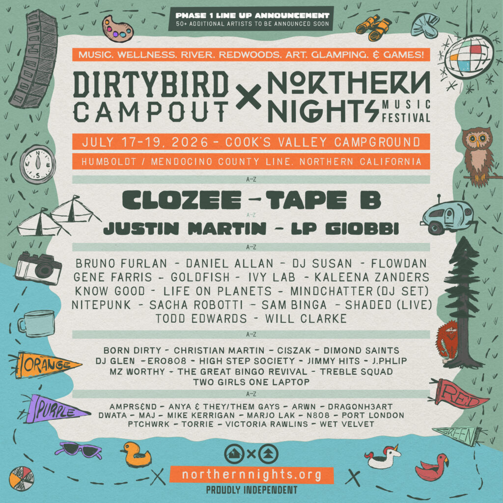 Two of Northern California’s most celebrated independent festivals, Dirtybird Campout and Northern Nights Music Festival, have officially unveiled the phase one lineup for their highly anticipated 2026 return. Scheduled for July 17-19 at the scenic Cook’s Valley Campground along the Humboldt/Mendocino County line, the event promises to transform the towering Redwoods and Eel River into an immersive sanctuary for music, art, and community.