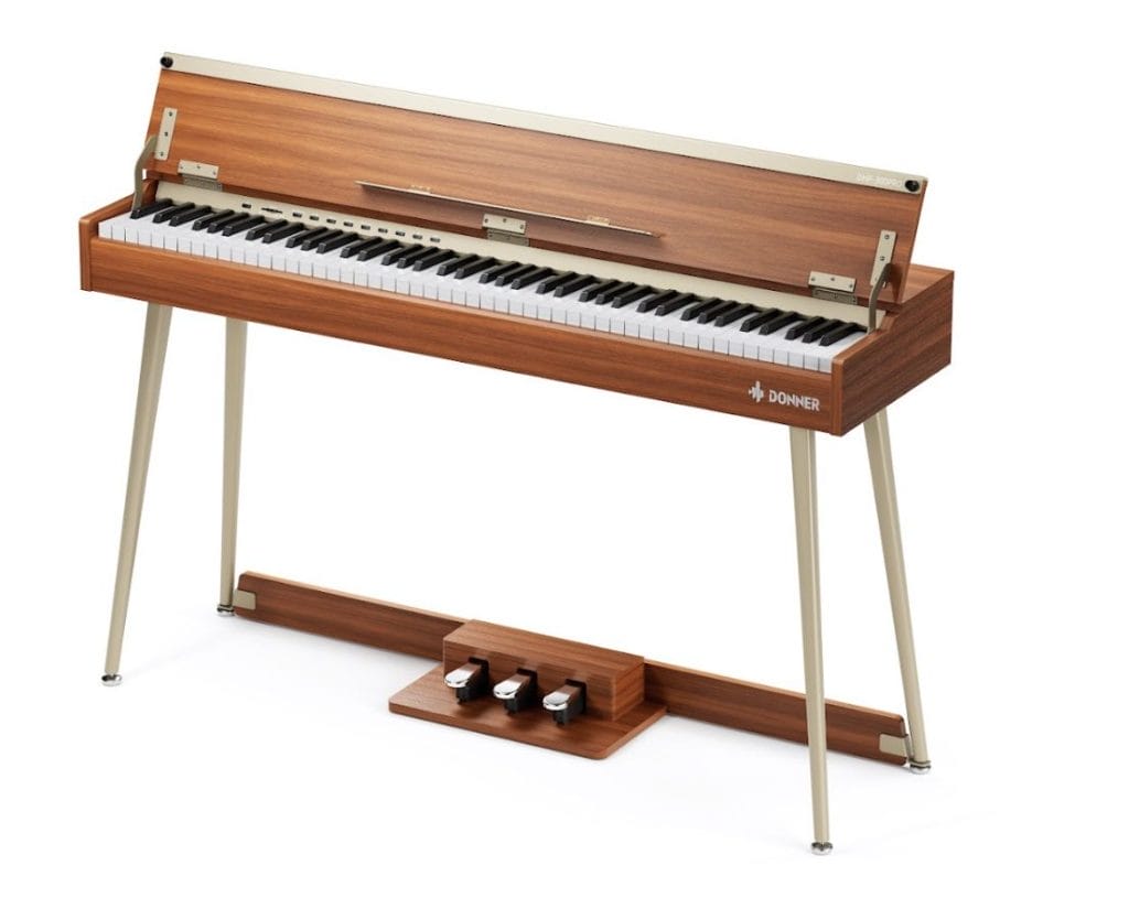 The DHP-300 Pro pushes further into the idea of a digital piano as part of the room rather than equipment that needs to be hidden. Its wood-grain finish and flip-top lid lean into furniture design, while still retaining an 88-key graded hammer-action keyboard and 128-note polyphony. Donner is clearly aiming this model at players who care as much about how the piano fits into their space as how it sounds.