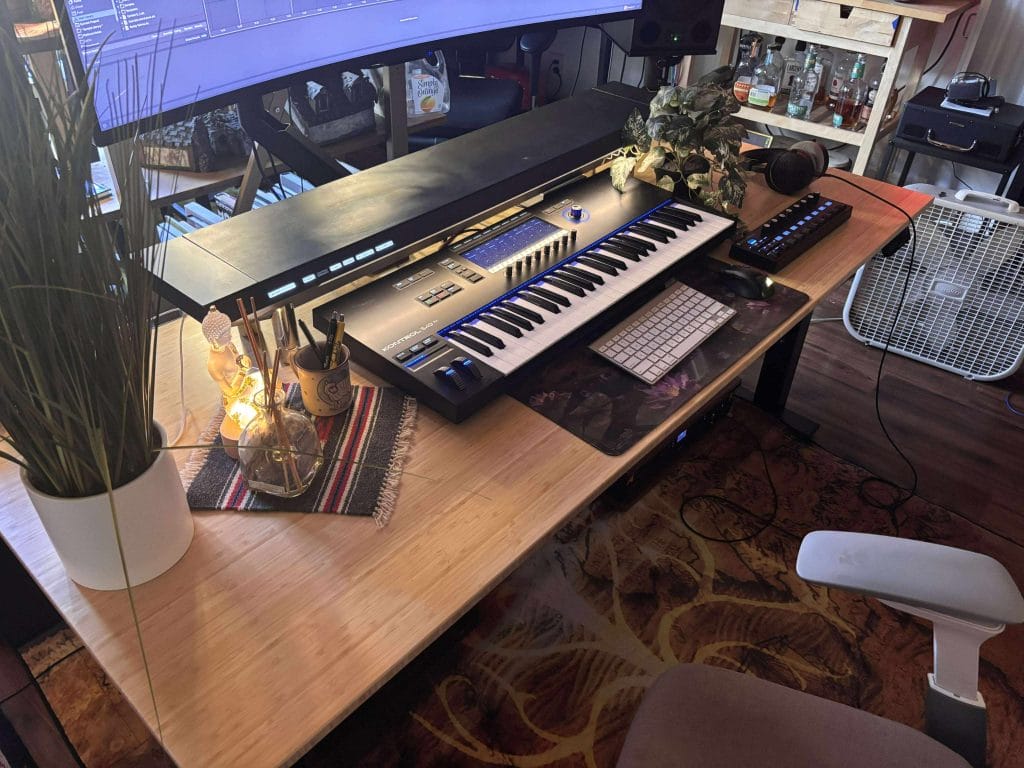 The main difference since adding this desk has been the workflow flexibility. I can move between sitting sound design sessions and standing arrangement work without breaking concentration. It’s quick, stable, and predictable, which makes it feel like part of the setup instead of a distraction.