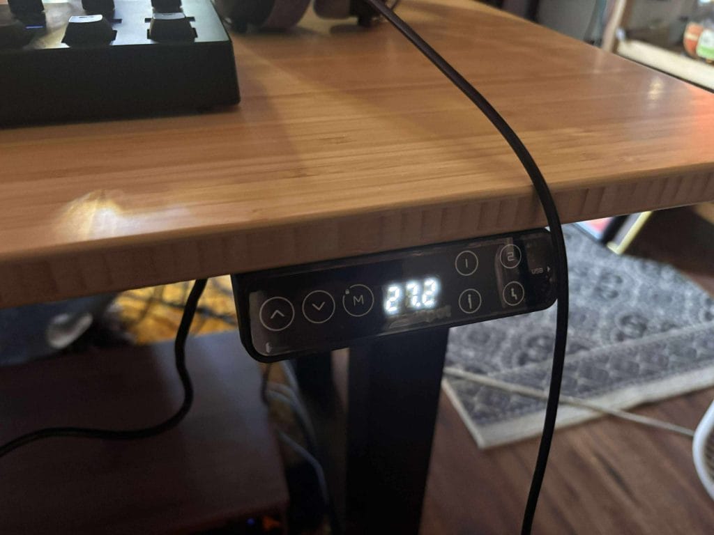 The E7 Plus comes with a small digital keypad where you can program four height presets. I’ve got mine set up for three main positions: one for mixing while seated, one for synth programming, and one for standing editing sessions. It makes it easy to jump between setups throughout the day without thinking about it.