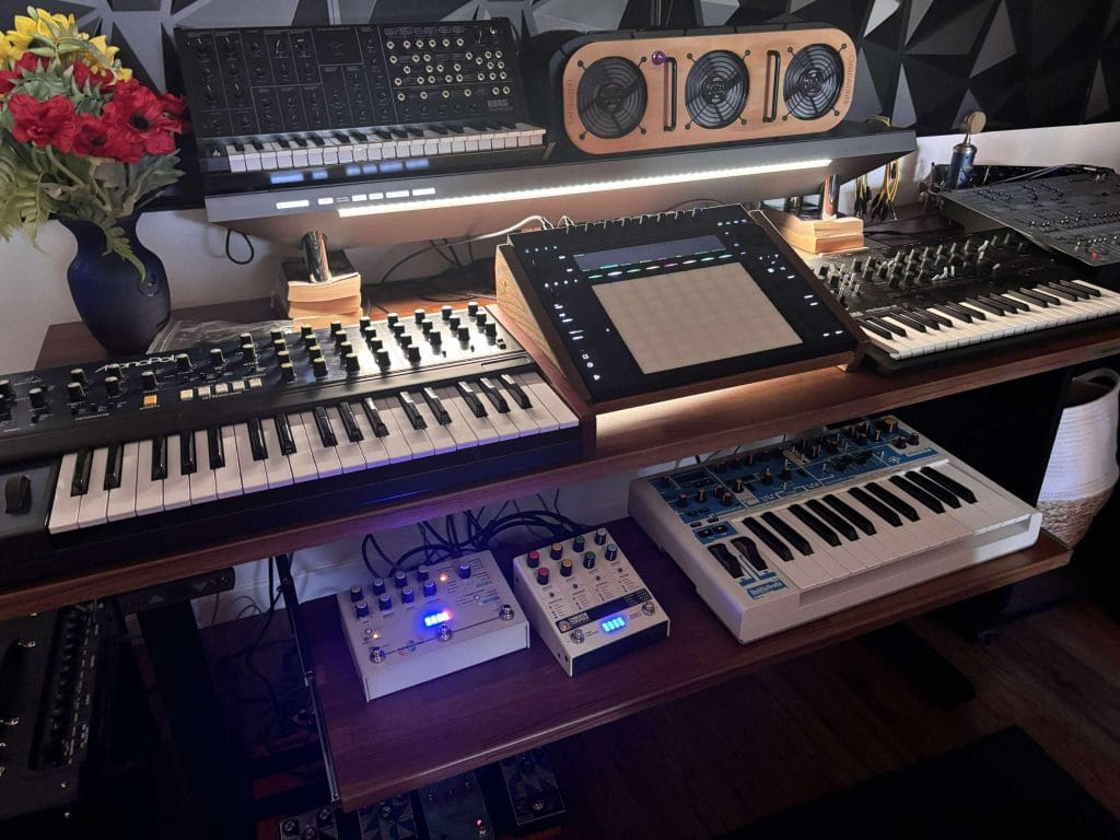 I’ve found that standing during creative idea sessions helps maintain focus longer. There’s a subtle mental shift when you move from sitting mix work to standing performance tasks like working on Push 3 or keyboard layers. The E7 Plus makes that transition instant.
