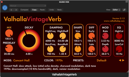 This is a (blasphemy permitted) godly reverb. The second you apply it to a chain or make it a bus you add magic beans to your mix. I usually add this to its own bus and then have another bus and add a delay (usually waves’ H DELAY on a tape setting).