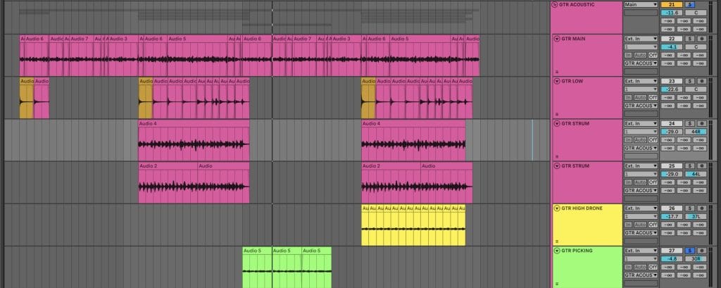 The main musical element from this song isn’t a plugin or synth but a number of acoustic guitar parts. Recording guitar live gives so much more life to a track that consists mainly out of synthesizers and ‘in-the-box’ elements such as baselines and house drums. “GTR MAIN” is the most important part and all other parts compliment the energy that I want the main guitar to have.