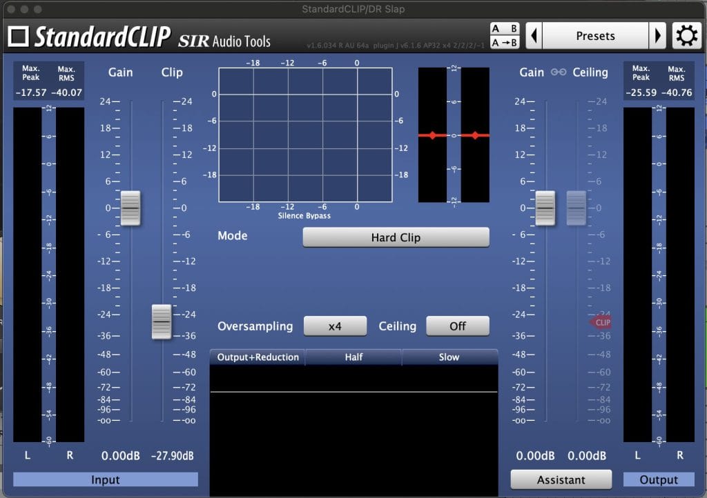 When I clip, I use the StandardCLIP by SIR Audio Tools. The user-interface isn’t too fancy but it has everything that you need. In this instance, I used the clipper on my claps to cut off the peaks in the dynamics. I changed the mode to ‘Hard Clip’ and then adjust the ceiling until I hit a couple dBs of gain reduction. You can hardly hear a difference in the sound but the highest peak is close to 8dBs softer.