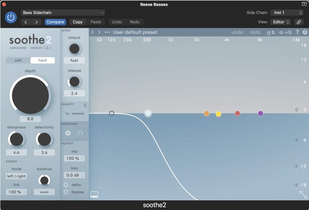 On Reese Groove, I used Soothe2 across a few key channels with a particular focus on its sidechain feature. In the low end, I sidechained the bass to the kick’s frequency range so Soothe2 could gently reduce only the overlapping frequencies, rather than ducking the entire signal. This kept the groove tight and punchy while still allowing the bass to maintain its full energy and presence. I also applied Soothe2 to multiple hi-hat layers to remove overlapping resonances, this helped each layer cut through clearly without clashing in the upper frequency range. This use of Soothe2 allows me to keep everything sonically clean and defined.