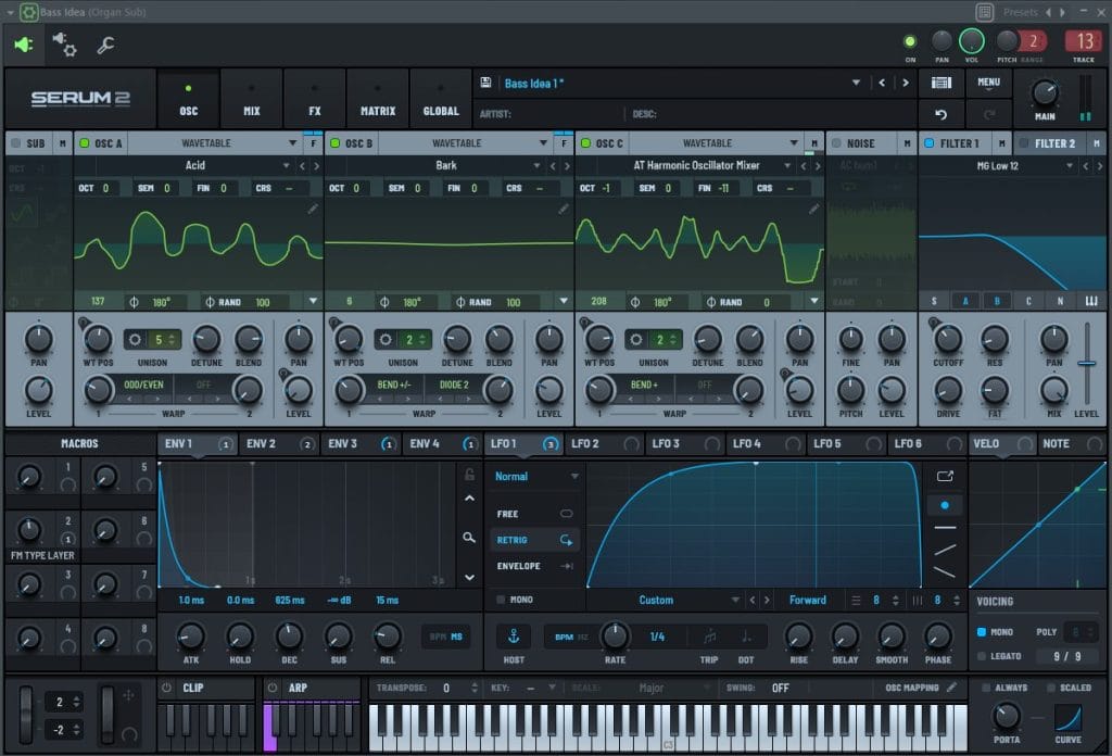 For this track I used it to create a top layer for my already subby organ bass, and it just added the mids to the bass that it was missing. One thing I’ve always loved about Serum is how creative you can get with it, and how you can assign most things to most other things in terms of modulation. It’s a very visual plugin too, which is a big thing for me because I like to see what I’m doing. When you can see the waveform moving as you’re playing your sound, or if you can see exactly what the warp modes are doing to alter or skew your waveforms, it gives you a better understanding of how you’re shaping your sound. That visual feedback makes the learning curve so much easier.
