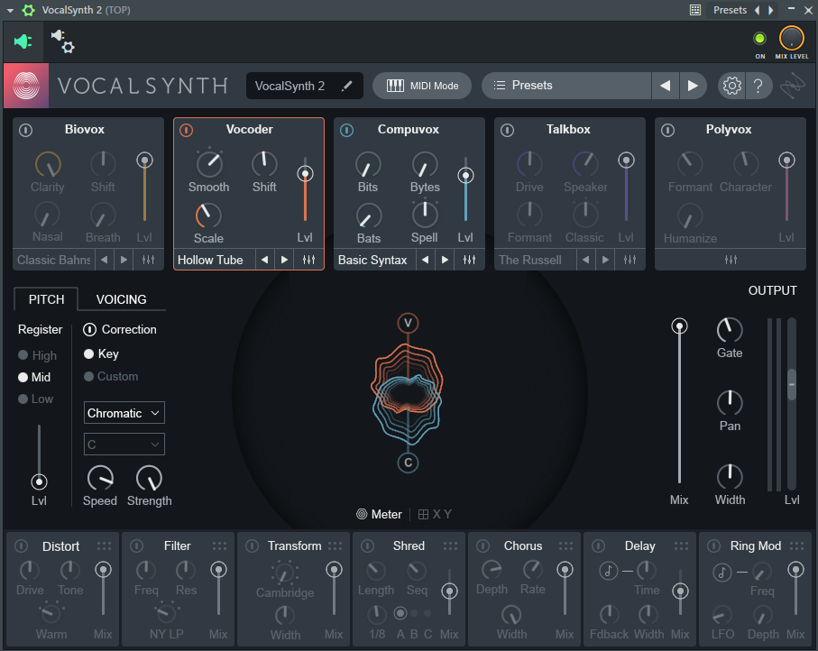 VocalSynth is an incredible plugin that allows you to create these crazy vocodered layers on your vocal tracks, but it’s not limited to just vocoders. There’s a whole range of different vocal processing types built in, each one creating distinctively different sounds and effects.