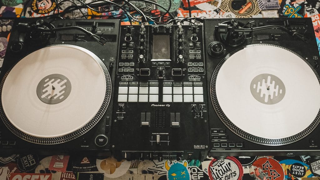 Jon: I have a background in turntablism and often use my DJ equipment in my productions. At the moment I am using the DJM-S11 mixer by Pioneer DJ and their PLX-CRSS12 turntables. The S11 is a turntablist-focused DJ mixer that connects with Serato with loads of performance features and the PLX-CRSS12s have the option of needle-less playback when using Serato using a clamp-like device that sits on the platter spindle.