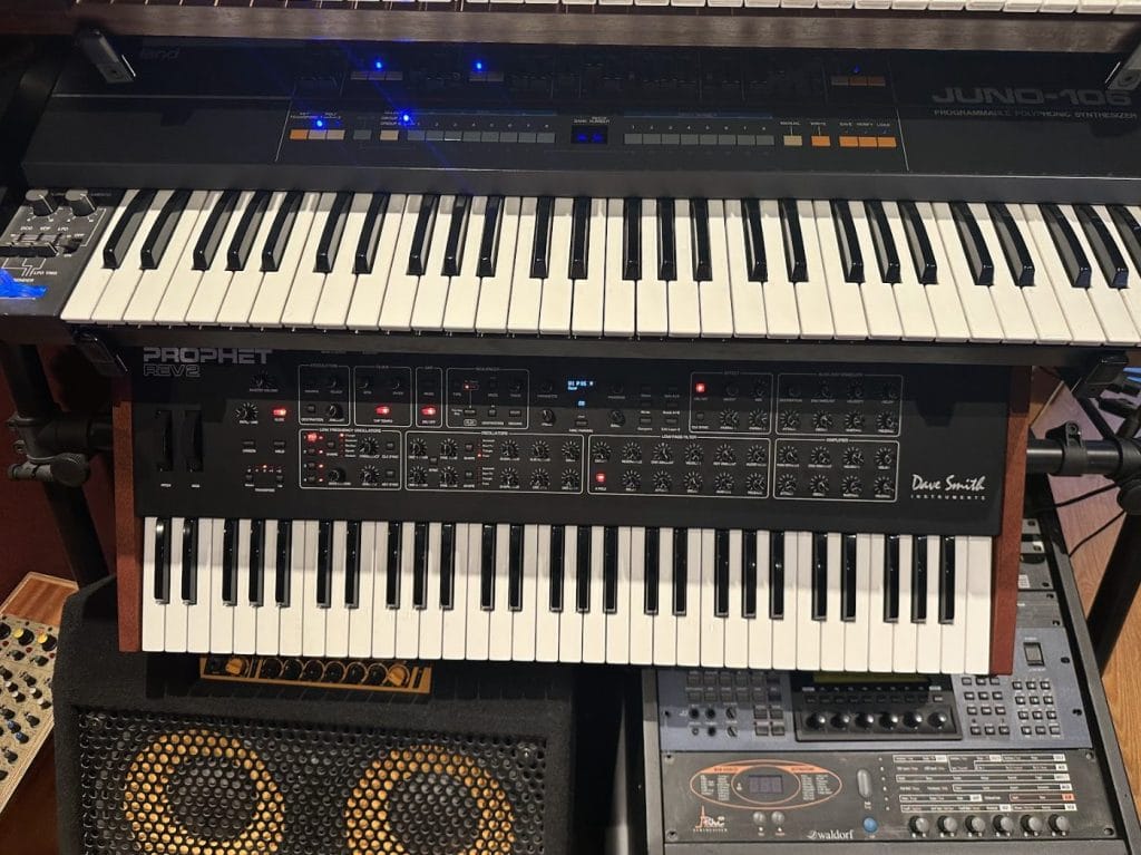 We have been using the Prophet rev 2 in so many of our tracks. It is a poly synth that includes lots of warm pads and bass and evolving texture with amazing modulations possibilities.