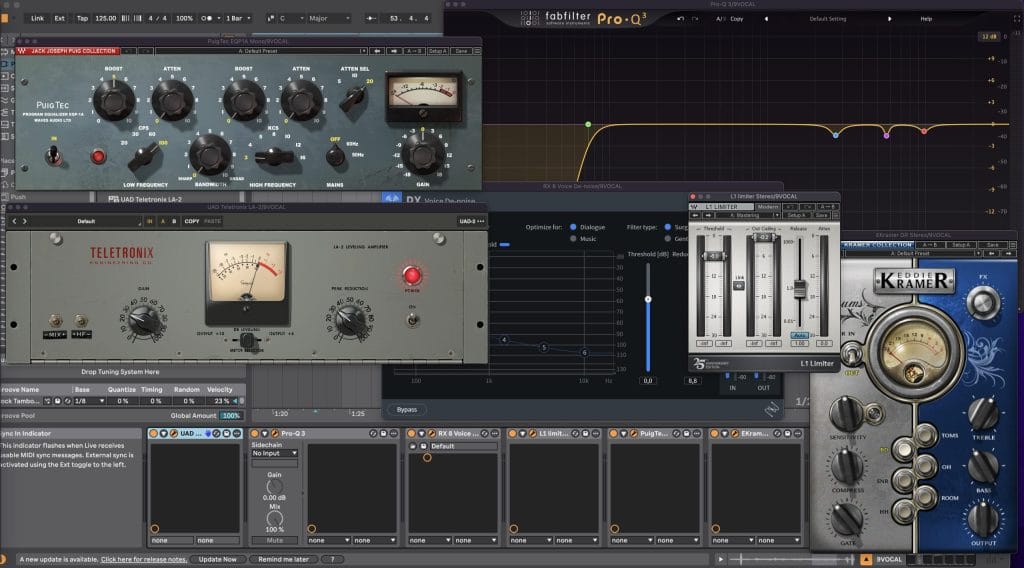 Waves L1 Limiter: Controlled the vocal dynamics without coloring the tone.