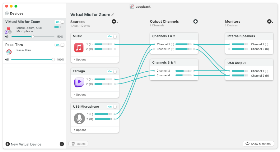 That means you can route Ableton, Logic, QuickTime, a browser tab, and your microphone into one clean feed instead of patching together a workaround every time you jump on Zoom or another platform. Rogue Amoeba also gives you custom channel mapping, monitoring, pass-through routing, and support for up to 64 channels, so it has room to grow with a larger setup. For a producer, that matters because online collaboration usually breaks at the routing stage long before the creative part starts.