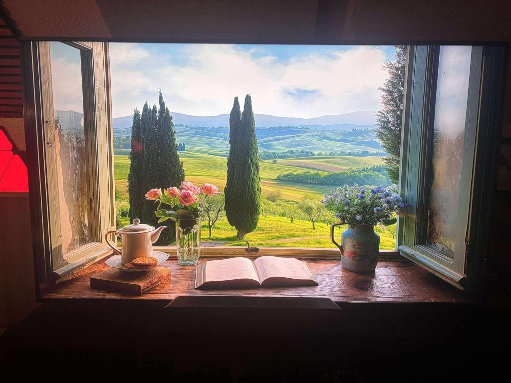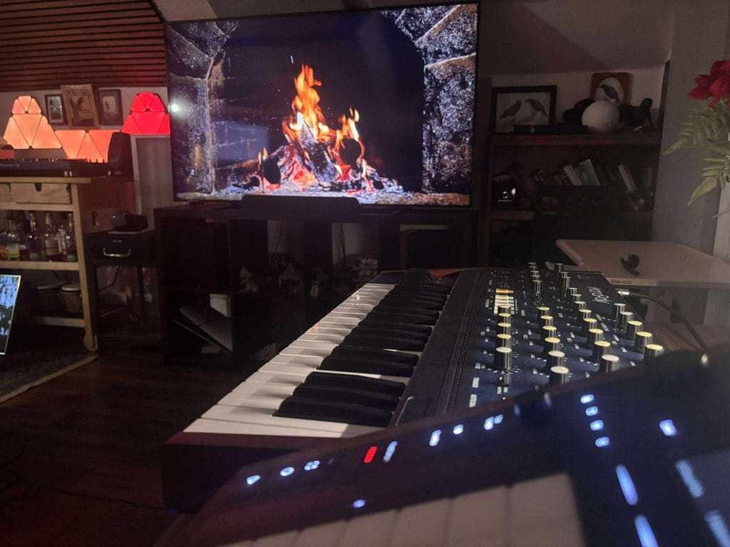 I’ve tried a lot of ways to build atmosphere in my studio, from LED strips and smart bulbs to projection mapping. None of them have felt as integrated or natural as using this TV for visual ambience.