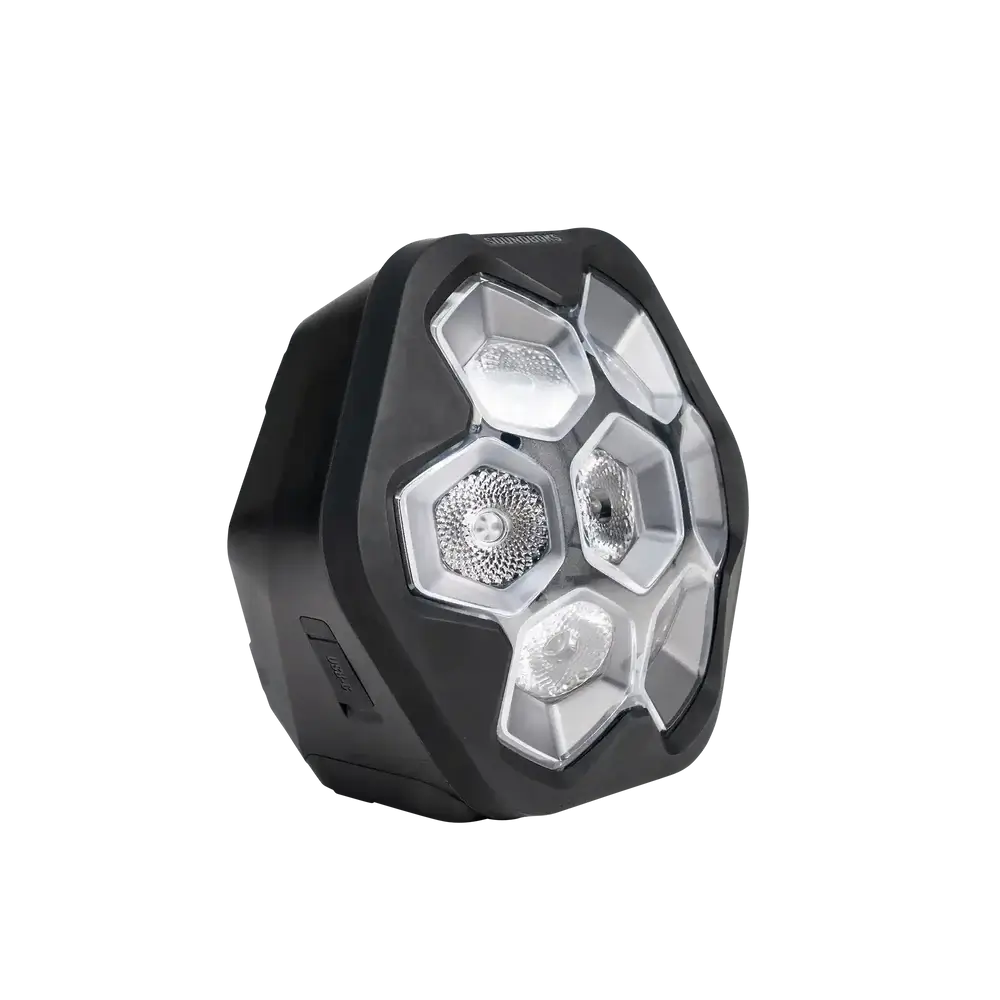 The first thing that really knocked my socks off is the design. The hexagonal body and hexagonal LED spots give it a modern, almost industrial look. It doesn’t feel like a toy, which matters when you’re dropping this much cash for a portable, renegade-party-style rave light. At about 8 x 9 x 5 inches and weighing 3.8 pounds, it has enough heft to feel substantial while still being easy to carry around. The built-in handle adds real convenience. I found myself moving it between rooms, taking it outside, and even packing it into my car without thinking twice.
