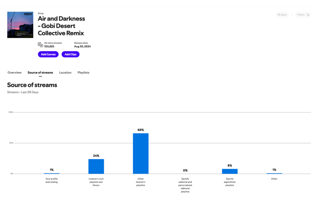Editorial playlists often generate a short burst of streams during the first week or two.