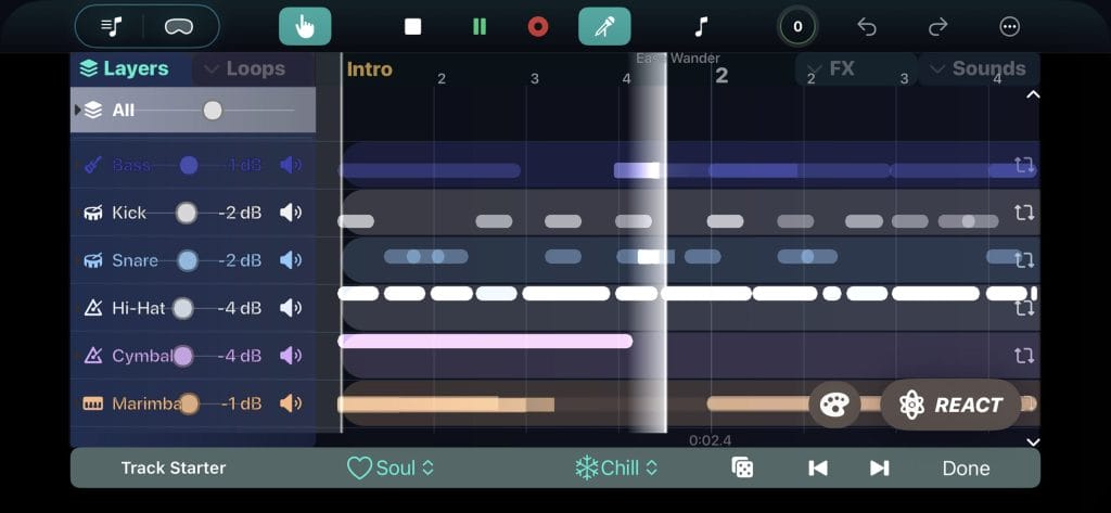 Then, there’s REACT, RipX’s motion-driven engine that turns your gestures into sound design. Tilt for a filter sweep, rotate for modulation, record and layer movements into evolving, expressive remixes. This function turns your phone into an instrument in its own right.