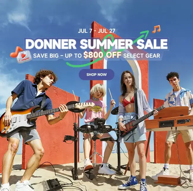 07/08/2025 Ravers Heat Donner Drops Prime Day Deals for Producers on the Go: HUSH Series Guitars, Digital Pianos, Synths, and More