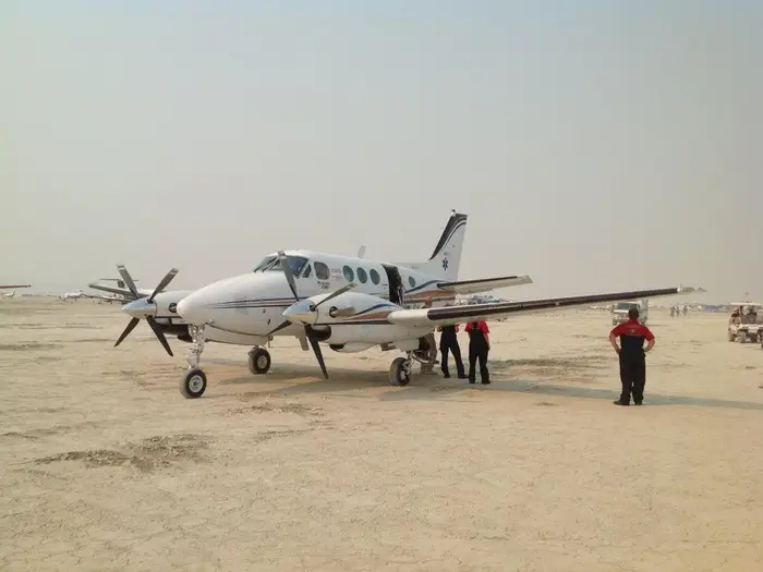 The airport handles a mix of private, charter, and shuttle flights, including the popular Burner Express Air service that connects the Playa with Los Angeles, the Bay Area, and Reno. Tickets run between $900 and $2,400 each way, with full-aircraft charters topping out around $18,000. Demand has jumped more than 20% this year, according to a Burner Express spokesperson; last year, the service flew 2,184 passengers.